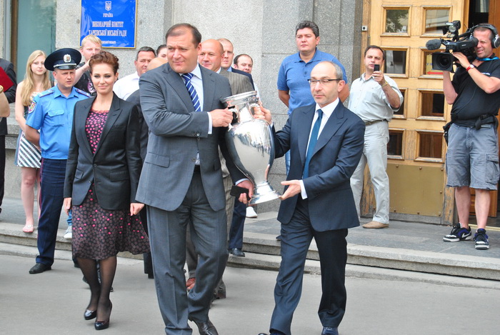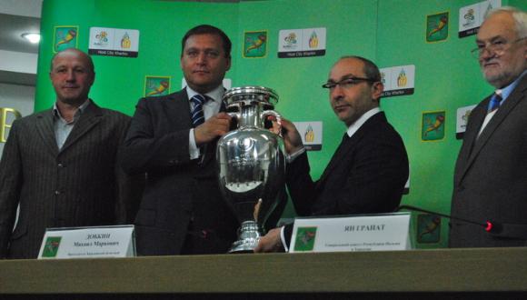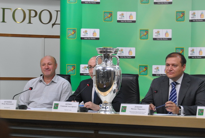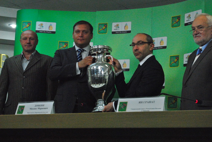 Сегодня состоялась пресс-конференция, посвященная прибытию Кубка Анри Делоне в Харьков. Кубок презентовали председатель Харьковской облгосадминистрации Михаил Добкин, Харьковский городской голова Геннадий Кернес, друг ЕВРО-2012 выдающийся харьковский футболист Игорь Кутепов, а также Генеральный консул Республики Польша в Харькове Ян Гранат.
