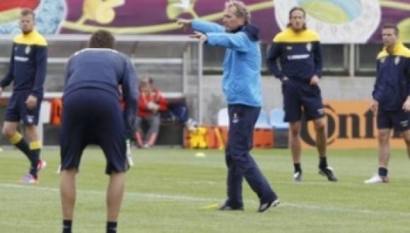 Удостоверившись, что игроки размялись должным образом, тренер разделил команду на две группы - первая, облачившись в манишки, отправилась играть двусторонку на маленькие ворота, вторая - приступила к теннисболу. Особенно активным в этой незамысловатой игре был лидер шведской дружины Златан Ибрагимович, который, в одном из эпизодов даже умудрился забить ударом через себя. Заключительным элементом полуторачасового занятия стали удары по воротам - и стоит отметить, что с точностью у шведов проблем не возникло.