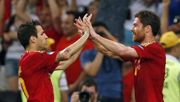 После первого тайма в матче Испания-Франция счёт 1:0.Гол забил на 19 минуте Хаби Алонсо