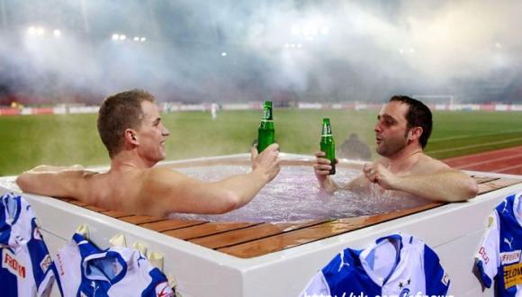 Швейцарский футбольный клуб Grasshopper сделал специальное предложение для своих болельщиков, установив джакузи на кромке поля своего домашнем стадионе.С прошлого уик-энда швейцарский клуб разыгрывает пару билетов в джакузи прямо возле кромки поля на стадионе Letzigrund на каждый домашний матч.Наблюдая за игрой любимой команды в джакузи болельщики могут спокойно попивать пиво или поздравить игроков своей команды с забитым голом.