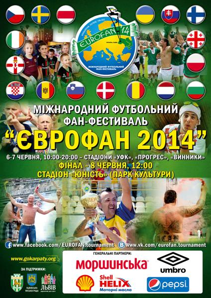 5-8 июня 2014 г. Общественной организацией «Карпаты» (Львов) при поддержке надежных партнеров будет проведен уже восьмой по счету традиционный международный фан-фестиваль для футбольных болельщиков из разных стран под названием «Еврофан» во Львове.
