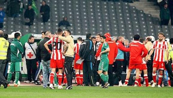 Напомним, что матч был прерван на 83 минуте при счете 0:1 в пользу Олимпиакоса. Виной тому стали фанаты Панатинаикоса, которые устроили драку с полицией, и стали закидывать их фаерами и обломками кресел.