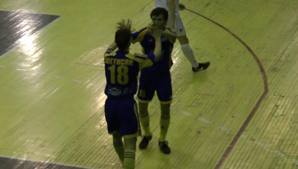 Игра началась довольно в спокойном русле, игроки обеих команд явно не собирались форсировать события. Первый полумомент возник уже в начале первого тайма, после скидки Андрея Воронько, казалось бы, опасно бил Тарас Рыбак. Незадолго после этого обрезался опытный Виталий Одегов, после чего Константин Сколотий вышел на хорошую позицию, чтобы открыть счет, но не вышло – выручил вратарь. Опасные моменты были у Рыбака и Ланко, но, как часто это бывает, забивает та команда, которая играла без моментов. Так случилось и на этот раз. Заброс через пол поля на Диденко Сергея, который практически без обработки отправил круглого в сетку ворот Монолита. Красивый гол, которого могло бы и не быть, если бы Галактион был чуточку расторопнее и не прозевал рывок Диденко. После пропущенного гола команды стали играть более жестко, на поле стало больше борьбы и единоборств. Так после одного из них хороший момент имел Евгений Ланко, который пробивал с острого угла. На 16 минуте болельщикам команды Монолита стало уж совсем грустно, когда Жилстрой-2 забивал свой второй гол усилиями Виктора Кравцова, которому, между прочим, помог монолитовец Андрей Воронько. Уж совсем не вовремя он подскользнулся, тем самым позволив Кравцову выскочить один на один с Романом Мякотой. 0-2 и Виталий Чернышев берет тайм аут, как оказалось не зря, уже через 4 минуты Тарас Рыбак сокращает отставание Монолита, да еще и как! По бразильски! Откликнувшись на передачу Константина Сколотия, Тарас пяточкой в касание забивает круглого в противоход вратарю. Видимо, это была месть за Романа Мякоту, который пропускал второй гол между ног. Под конец тайма Монолит заметно прибавил в скорости, и оборона Жилстроя трещала по швам. Кульминацией же первого тайма стал гол Константина Сколотия, который, может быть, вышел не такой эффектный как у Рыбака, но зато очень эффективный, классика жанра мини-футбола: угловой – удар в касание – гол. Стоит отметить, что Костя в этот вечер был одним из лучших в составе Монолита, эффективно действовал на всех участках поля, подчищал огрехи партнеров, активно асисстировал и даже забил сам.