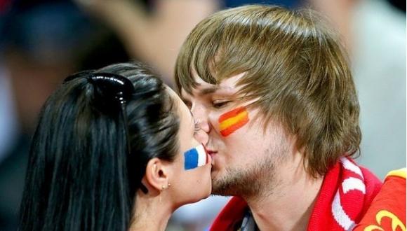 Встреча сборных Испании и Франции собрала на трибунах "Донбасс Арены" 47 тысяч зрителей, присутствует много болельщиков из Украины и Российской Федерации.