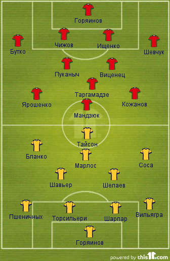 Состав «Металлиста» по сравнению с предыдущим сезоном не изменился кардинальным образом. Конечно, нельзя не отметить, что теперь многим будет не хватать того важного игрока, который теперь будет защищать цвета одного из конкурентов «Металлиста». Речь, конечно же, идет о Марко Девиче, который стал главной утратой «Металлиста» в период межсезонья. Не было пока и громких трансферов, если не считать подписанного только что Виллиана Гомеса де Секейры, чемпиона Бразилии и обладателя Кубка Либертадорес в составе бразильского «Коринтианса». Также, учитывая лимит легионеров, нелишним и многообещающим видится подспорье в лице других новобранцев клуба – Павла Ребенка и Андрея Оберемко. Вновь готов помочь «желто-синим» Владимир Лысенко, прекрасно себя проявивший в последнем контрольном поединке накануне старта в новом сезоне. В товарищеском поединке с «Кремнем» Лысенко сделал хет-трик, еще два мяча забил Се6астьян Бланко, который в этом сезоне, похоже, прочно пропишется в основе. Хотя решать это не нам, а Мирону Маркевичу. И уж тем более Мирон Богданович больше осведомлен о текущей форме, в которой подошел к первом туру каждый из его подопечных. Единственное, что можно с уверенностью утверждать – «Металлисту» в 1 туре не смогут помочь дисквалифицированный Эдмар, а также будущий участник Олимпийских игр Папа Гуйе. Мы же можем лишь предполагать, кто сегодня выйдет на поле стадиона «Металлист», который с гордостью принял континентальный чемпионат и уже соскучился по битвам чемпионата страны, которые порой бывают не менее напряженными и интригующими.