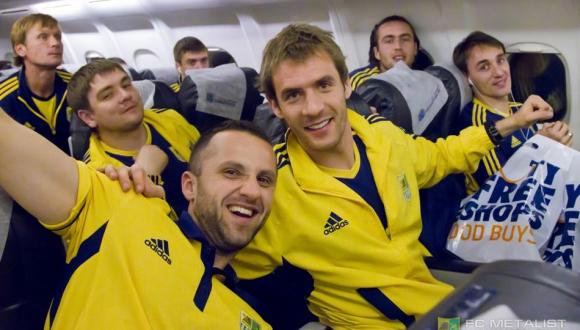 Около 6-40 самолет с делегацией футбольного клуба "Металлист" на борту успешно приземлился после почти трехчасового перелета из города Афины. Настроение после ночного перелета у команды отличное.