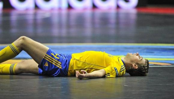 Не зря Геннадий Лисенчук не хотел встречаться в четвертьфинале с командой Хорватии. Уже с первых минут обнажились главные козыри хозяев первенства: запредельная мотивация, цепкость, настырность и фантастическая поддержка трибун. И этим последним фактором нельзя пренебрегать, так как свист болельщиков способен сбить с толку не только игроков, но и арбитра поединка. В целом, первый тайм остался за «клетчатыми» - и по счету, и по игре. Первая десятиминутка получилась несколько сумбурной - настрой хорватов часто не всегда оказывался плюсом для их атакующих действий, они нередко заигрывались, фолили. В то же время у украинцев почти ничего не получалось у ворот Юкича. Первая действительно опасная атака состоялась на 7-й минуте, однако Дмитрий Клочко был неточен. В середине первого тайма игра велась преимущественно в центре площадки, было много борьбы, но и много брака, как с одной, так и с другой стороны. Постепенно хорваты стали прибирать контроль мяча к своим ногам, они подолгу разыгрывали мяч, время от времени напрягая Иваняка. Особо активными на паркете были Грцич и Маринович, и именно второму удалось начать атаку, в результате которой Украина пропустила первый гол в этом матче: Дарио с левого фланга отпасовал на партнера, который стоял на лицевой линии, а тот пробил в нашего Дениса Овсянникова, от которого мяч залетел в ворота Евгения Иваняка. До конца первой половины встречи оставалось чуть менее трех минут, и украинцы попытались взвинтить темп. Действительно, подопечным Лисенчука удались несколько атак, однако в голы они воплощены не были.